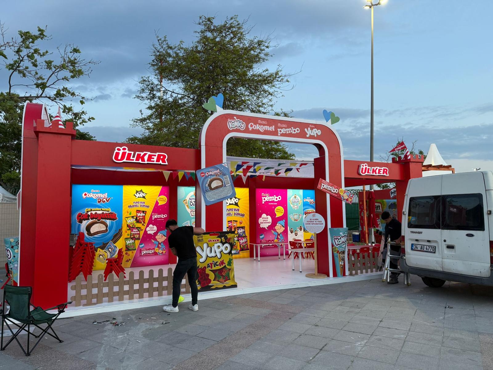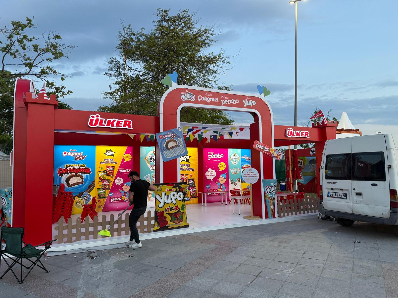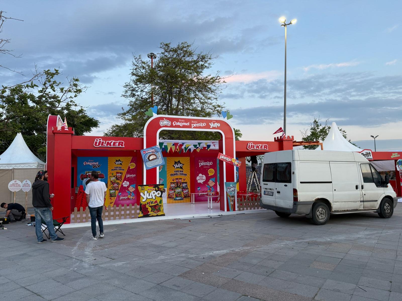 Mobilya & Aksesuar: Konfor ve işlevsellik düşünülerek yerleştirilen masa ve sandalyeler, standın iç alan kullanımını zenginleştirdi.